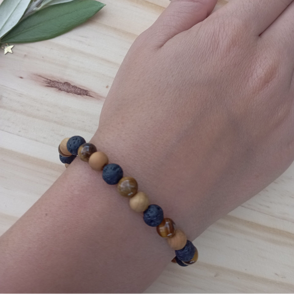 🌿Bracelet enfant en oeil de tigre, lave et bois. Protection et ancrage🌿
