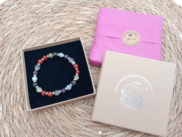 Bracelet ÉNERGIE CHAKRAS . Équilibre, Vitalité, Harmonie intérieure. Bijou en Pierres Naturelles