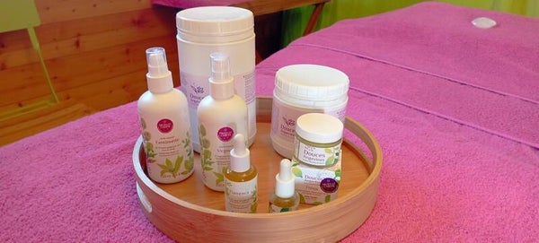 Tous mes soins sont réalisés avec les produits bio, naturels et locaux de la marque Les Douces Angevines. 🌸